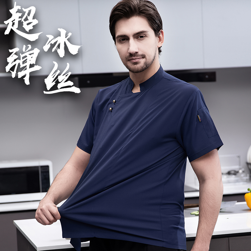 高端星级酒店超弹厨师工作服男短袖厨房厨师后厨工衣夏季薄款厨衣