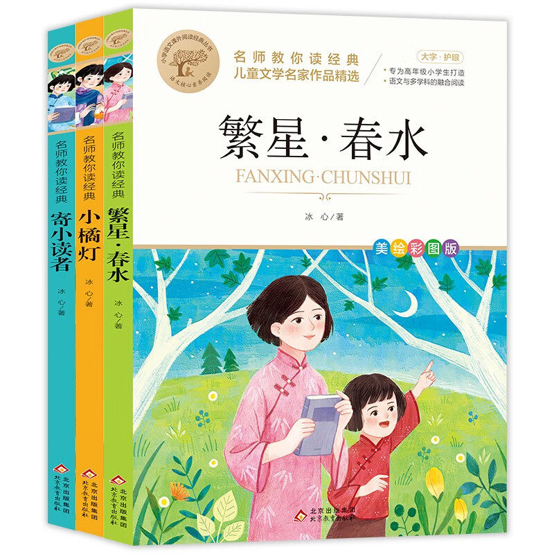 冰心三部曲儿童文学全集青少年版适合三四五六年级下册阅读的课外书籍现代诗散文集繁星春水寄小读者桔灯橘小学生获奖作品