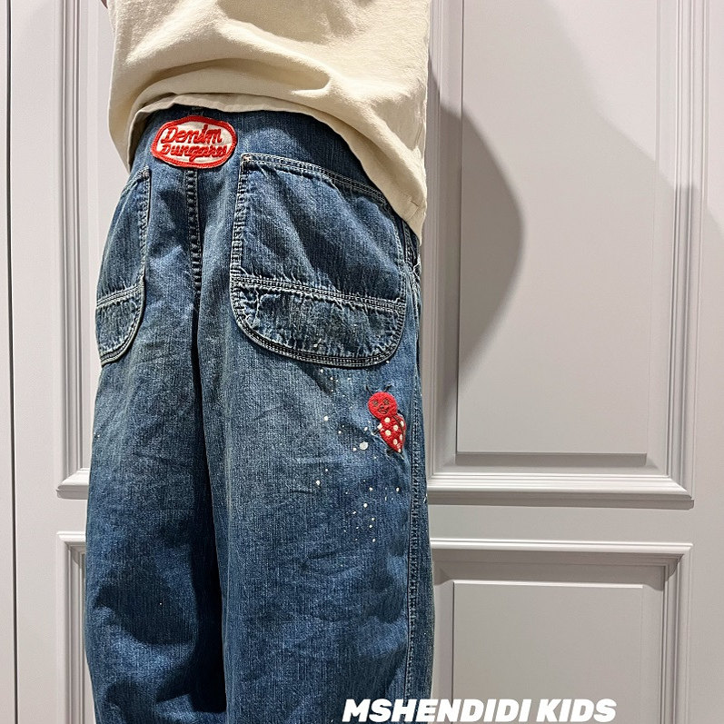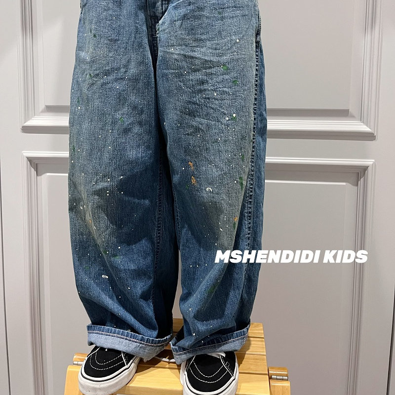 七星瓢虫牛仔裤 2025年 童装春秋薄款男女童软牛仔泼墨休闲长裤