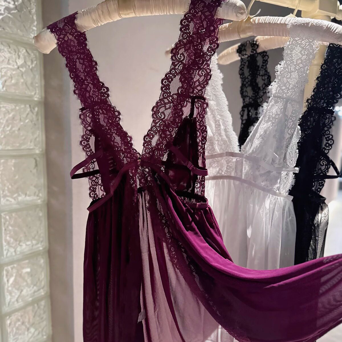 「LA」反转邂逅丨边界系列*深V露背性感睡裙女紫色高级感蕾丝睡衣
