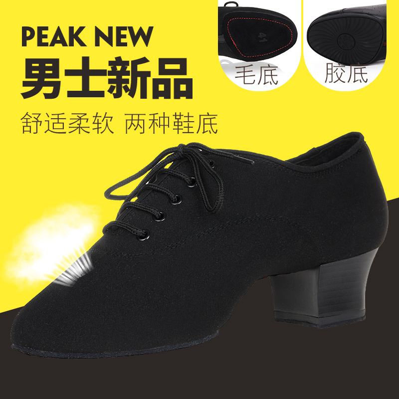 自然牛拉丁舞鞋男士牛津布舞蹈鞋成人软底交谊国标跳舞鞋中跟四季