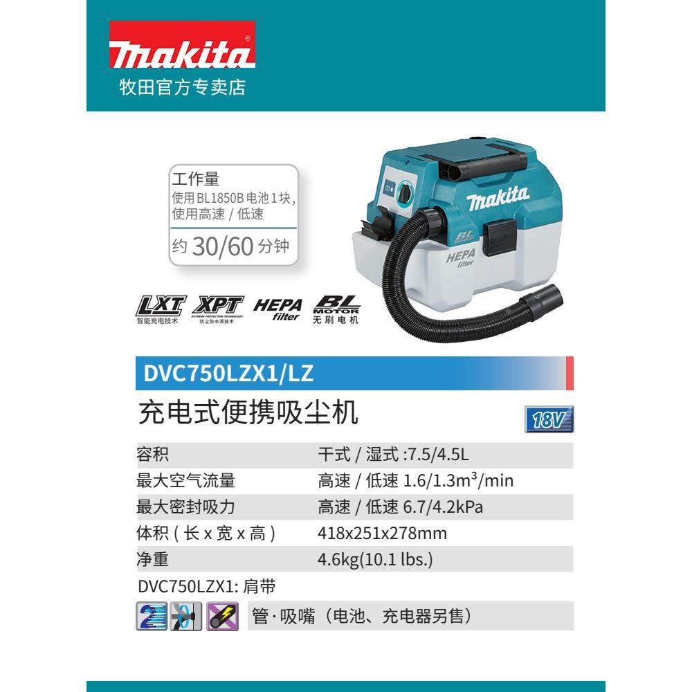 makita充电便携吸尘器无刷吹风机DVC750LZ清洁除尘多功能18V