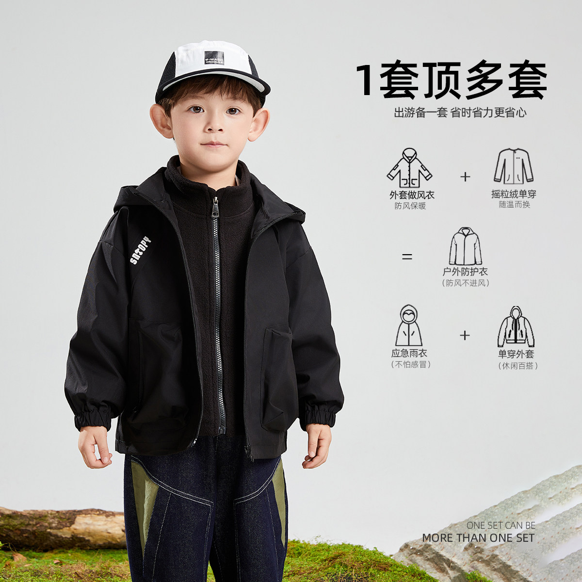 男童外套春秋款2025新款冬季洋气儿童三合一防风防水可拆卸冲锋衣