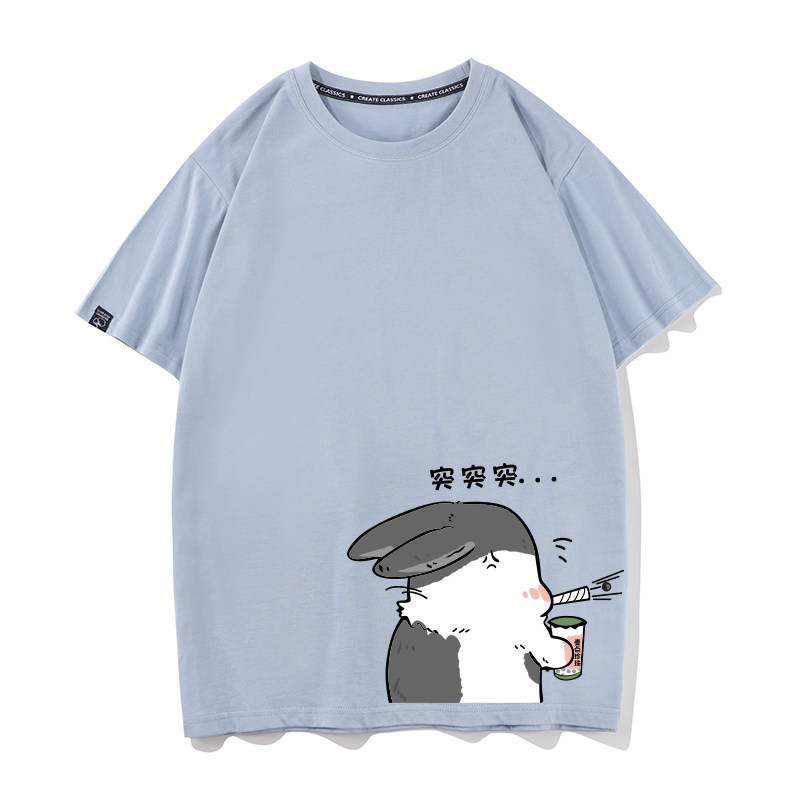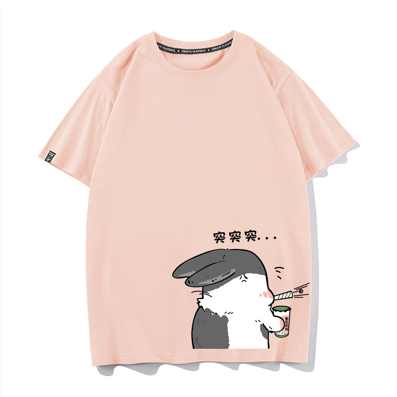 秀洛兔子奶茶不一样情侣装夏装痛衣新款潮流短袖T恤男女学生衣服