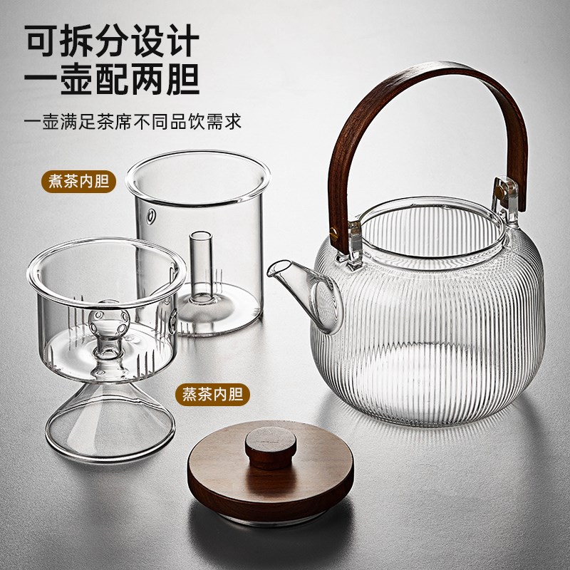 58N忆壶茶玻璃蒸煮茶壶耐高温烧水壶提梁围炉煮S茶器电陶炉茶具套