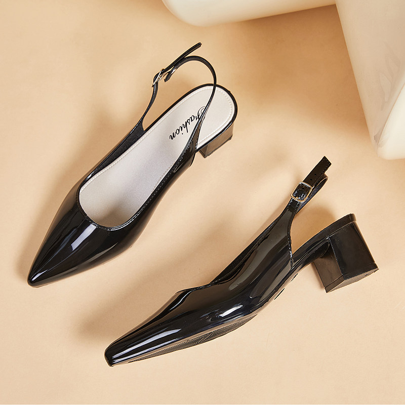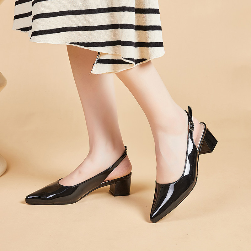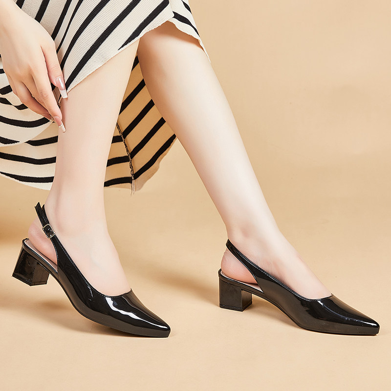 女夏时尚尖头塑料凉鞋外穿增高中跟粗跟沙滩单鞋配裙防滑软底仙女