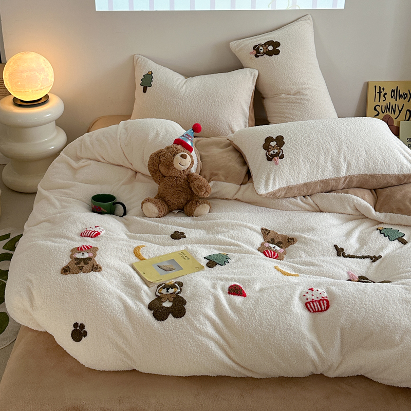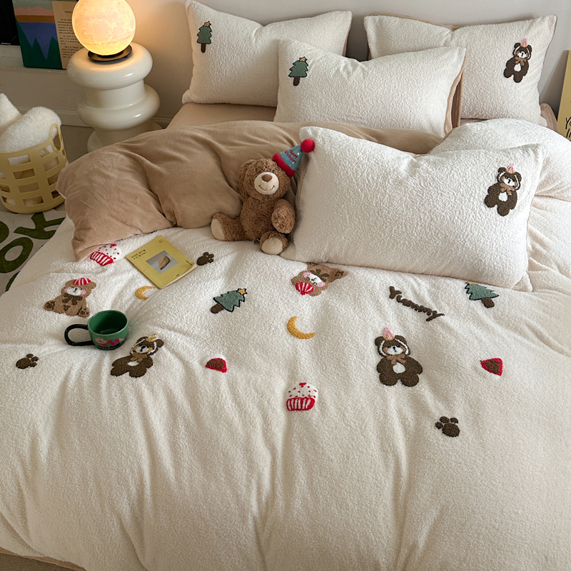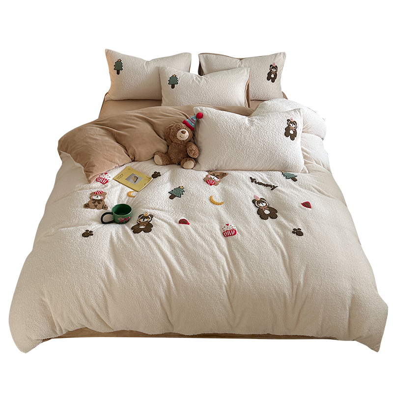 冬季可爱卡通加厚羊羔绒儿童三四件套被套珊瑚牛奶绒床单保暖床品