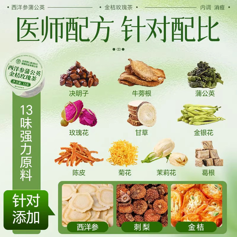 北京同仁蒲公英金桔茶金银花菊花去清毒火热排解痘消祛炎养生茶