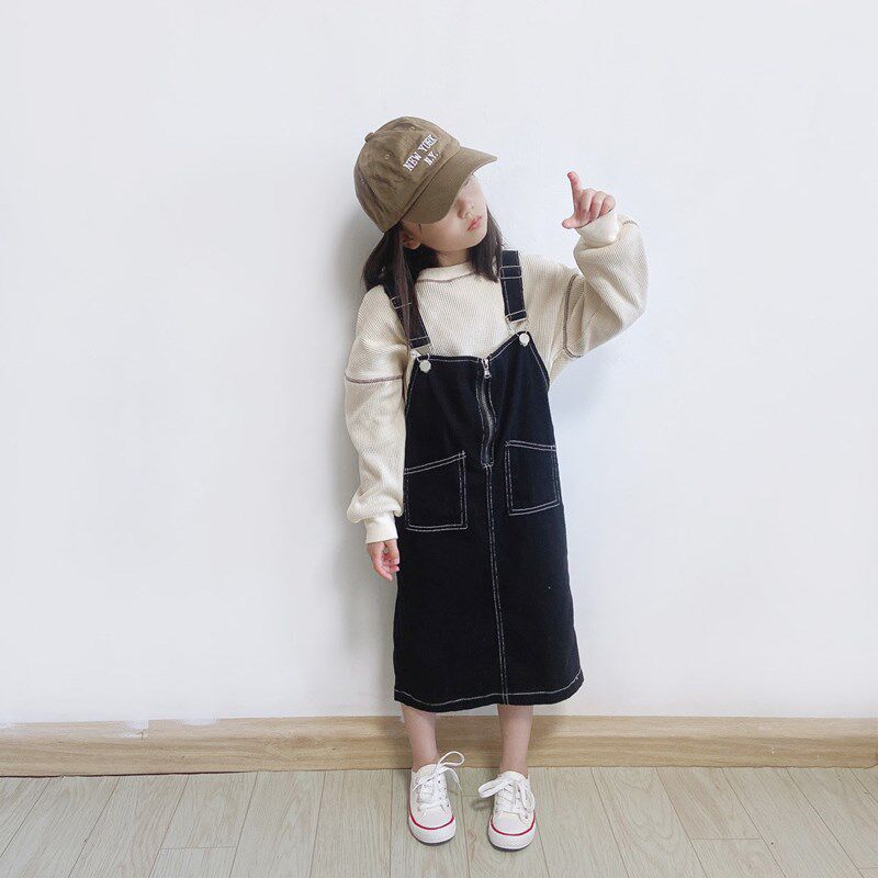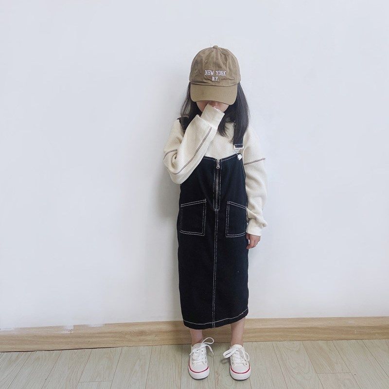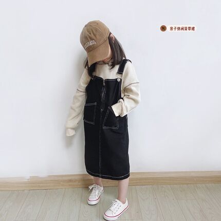 儿童牛仔背带裙秋2024女童 洋气日系休闲吊带裙韩版亲子背带套装