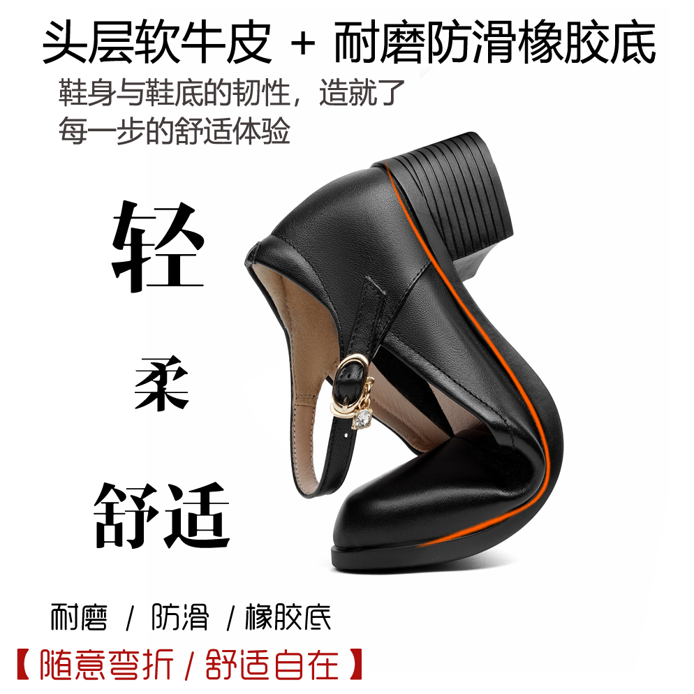 春季真皮女士皮鞋上班工作鞋低跟女单鞋职业女式单皮鞋妈妈跳舞鞋