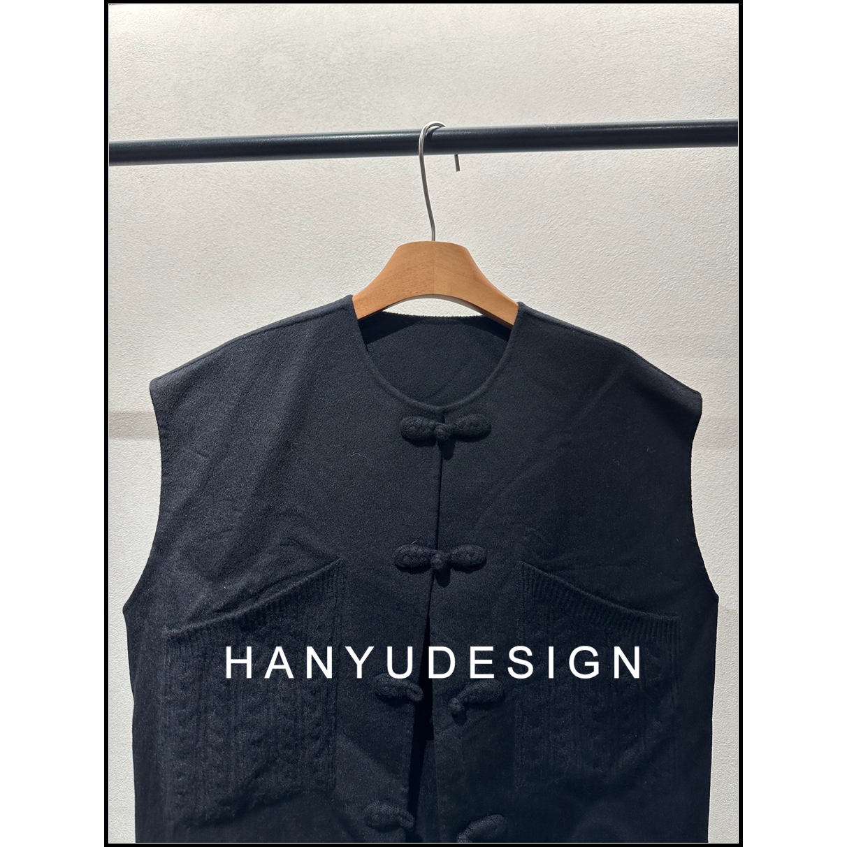 【韩钰DESIGN】 100%羊绒新中式盘扣圆领无袖双面马甲背心女