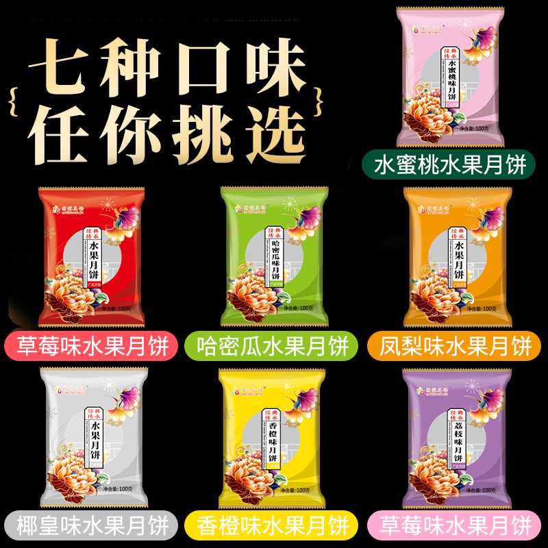 广式水果大月饼100g低糖馅料多散装中秋礼盒哈密瓜多口味整箱批发
