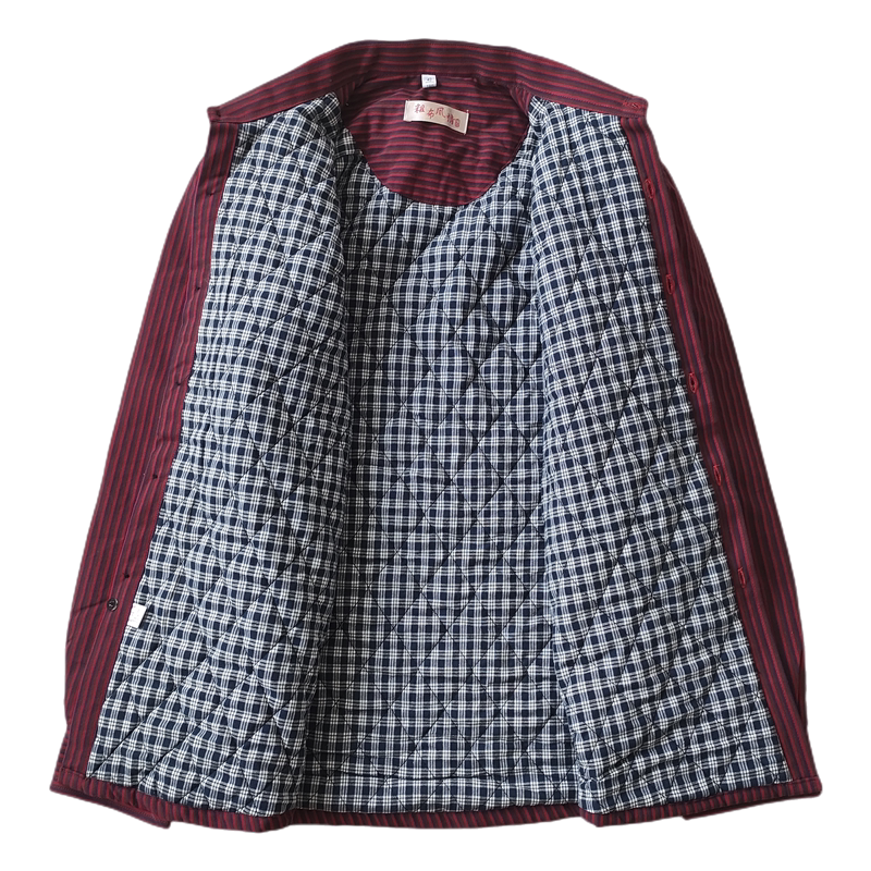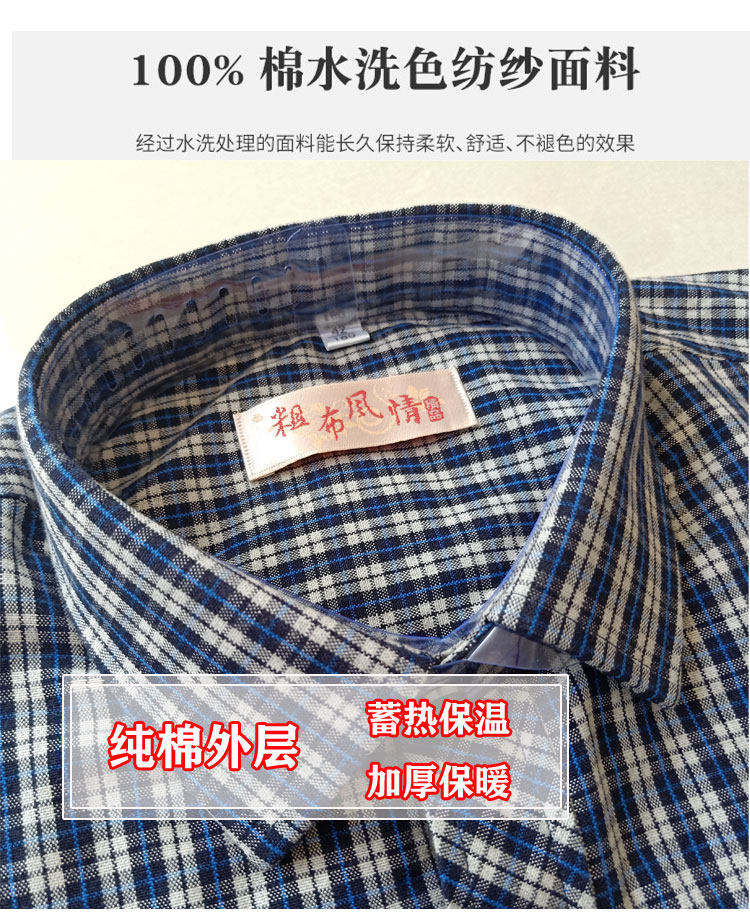 冬季纯棉老粗布男士夹棉保暖棉衬衣中老年长袖棉衬衫宽松舒适免烫