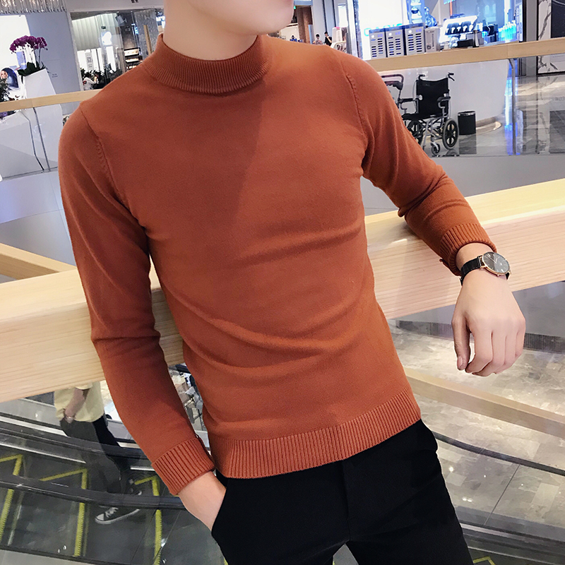 小码男装纯色基础款紧身半高领毛衣男155XS码S韩版套头针织打底衫
