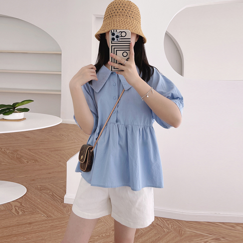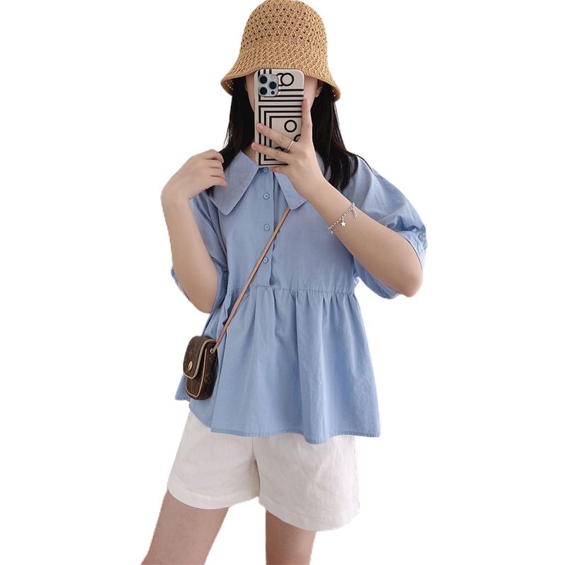 孕妇上衣夏装宽松衬衫夏款娃娃衫时尚F套装小个T子夏季短裤子两件