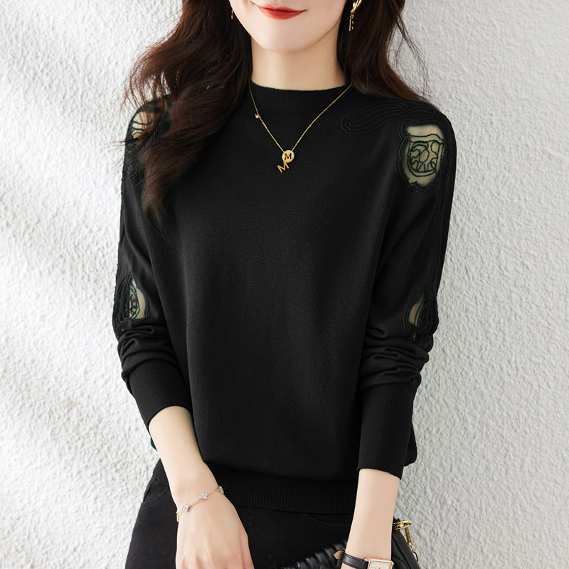 纯色蕾丝绿色慵懒风女内搭针织衫