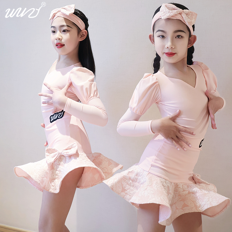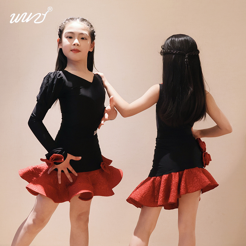 凤蒂2024新款春夏季拉丁舞蹈服女童无袖裙摆练功服儿童高级表演服