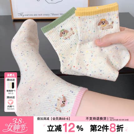 星星小狗袜~韩版2026新款中筒袜女点子纱撞色腊肠狗无骨薄款秋季