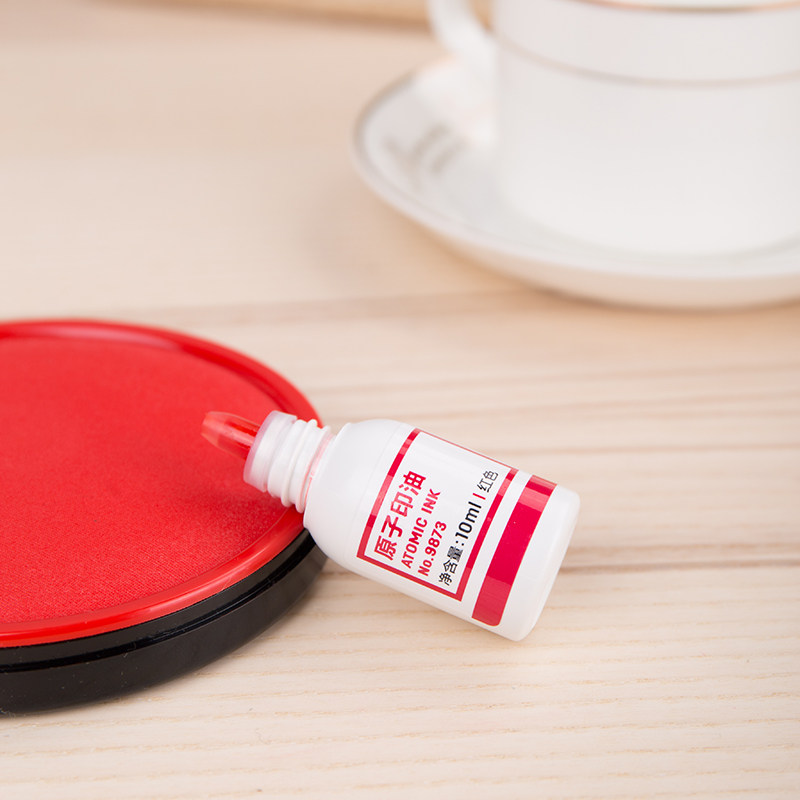 得力9873红色原子印油 10毫升印台印泥油印章油专用红色快干 批发