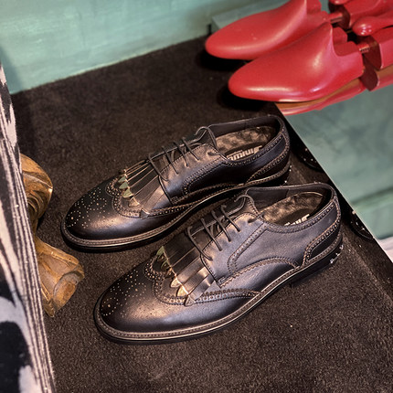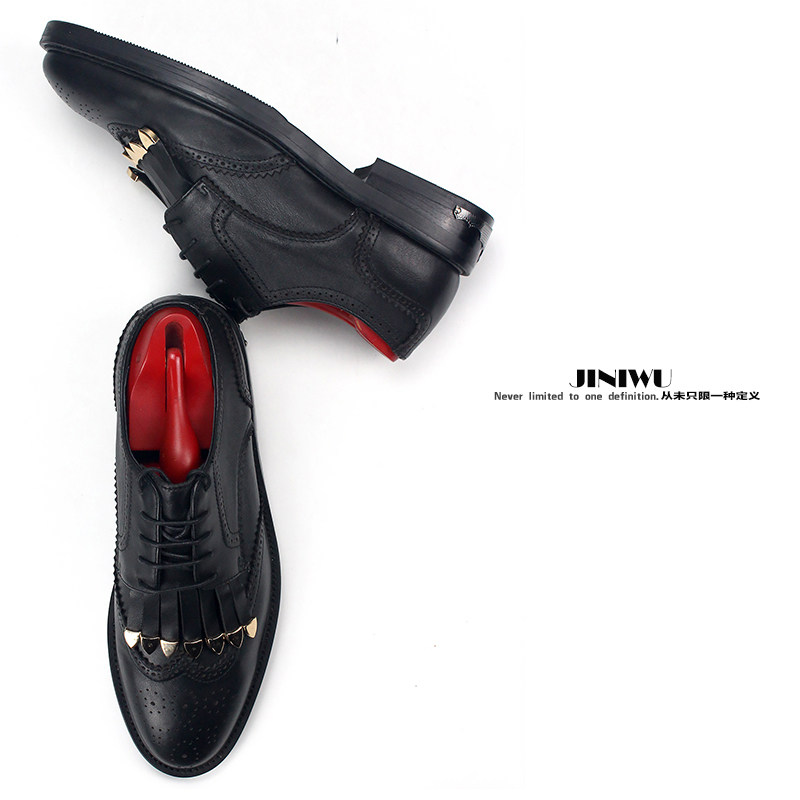 JINIWU吾倪季2025流苏皮鞋雕花手工德比正装牛皮欧美潮流时尚男鞋