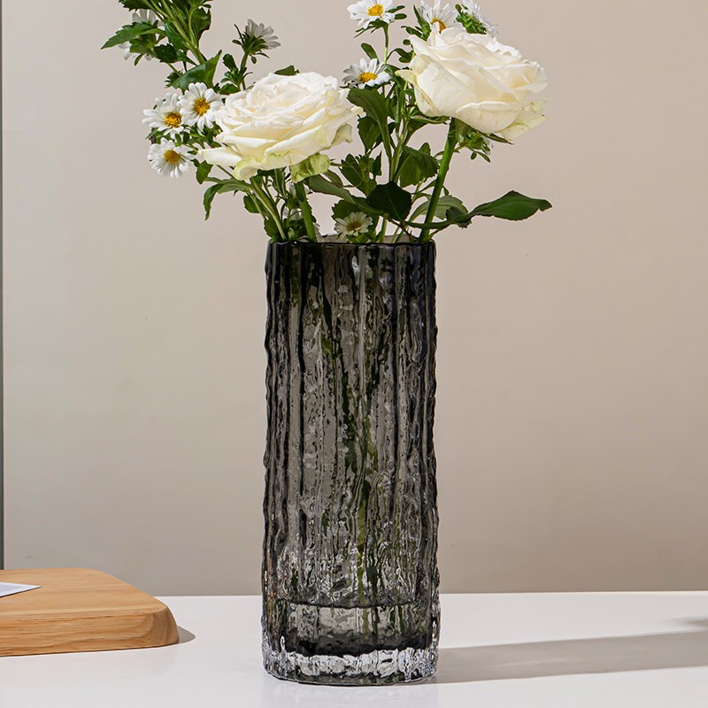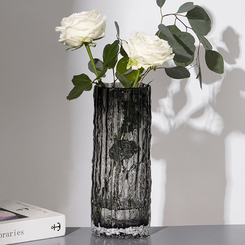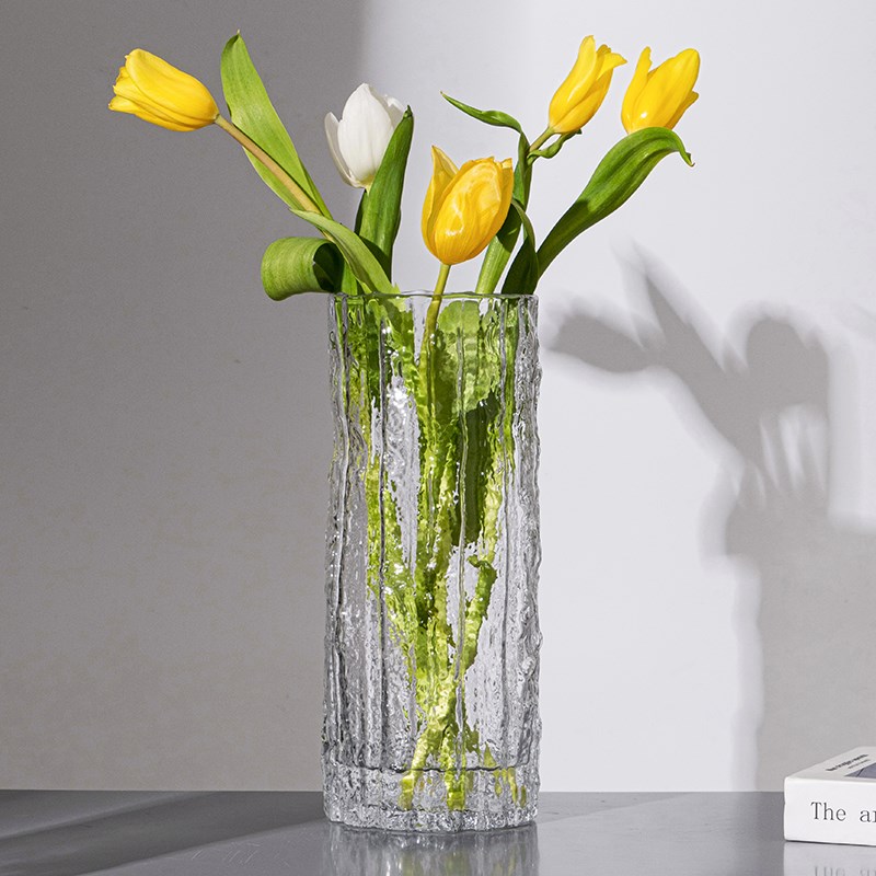 大号花瓶冰川设计感玻璃花瓶轻奢高级感摆件客厅水养富贵竹插花瓶