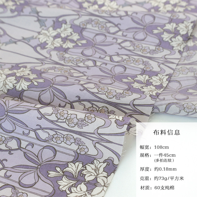 日本进口北高60支纯棉面料手工柔软舒适衬衫连衣裙服装布攀枝花卉
