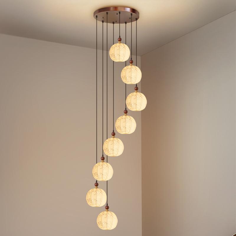 中古风宋式美学布罩楼梯吊灯楼梯间复式楼别墅新中式古典复古吊灯