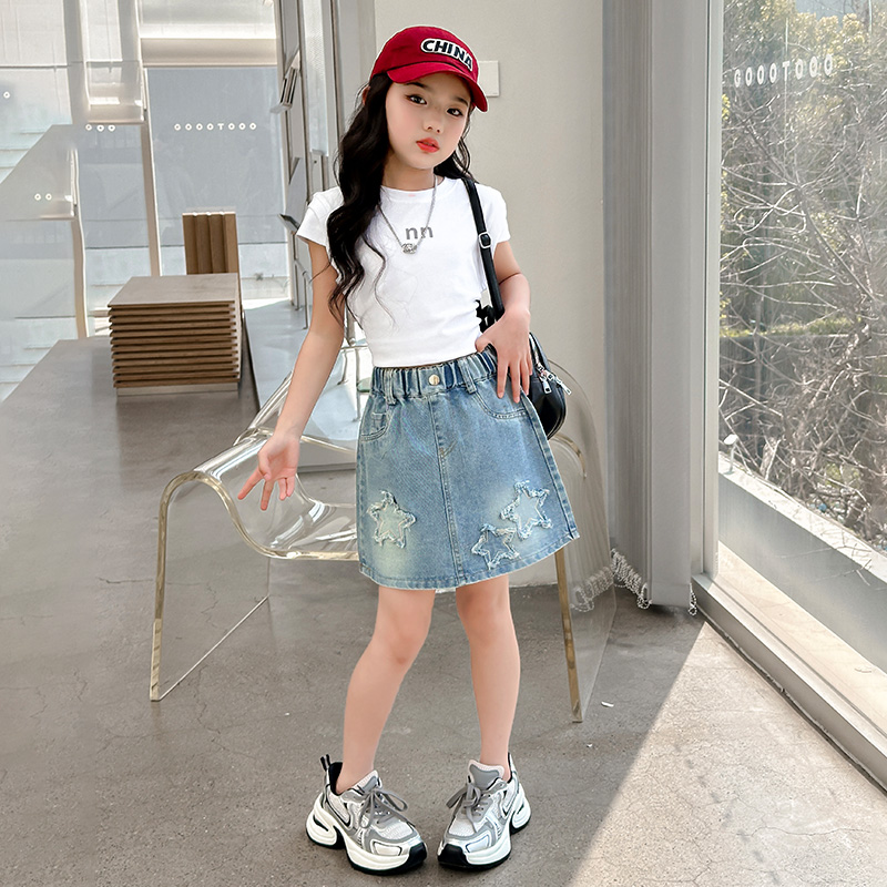 女童半身裙夏季薄款2025新款夏装女孩洋气时尚牛仔裤裙儿童短裙子