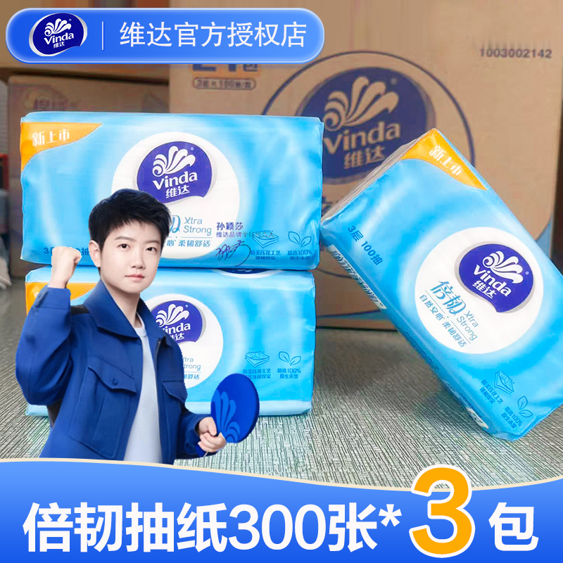 维达倍韧100抽24包/箱抽纸实惠卫生纸婴儿软抽纸批发面巾纸餐巾纸