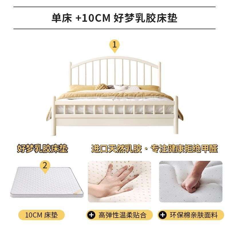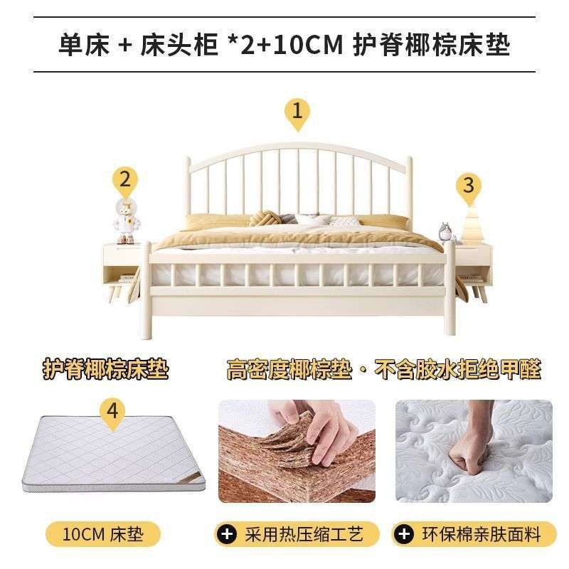 北欧白色实木床现代简约奶油风1.8米单双人床1.5米温莎公主储物床