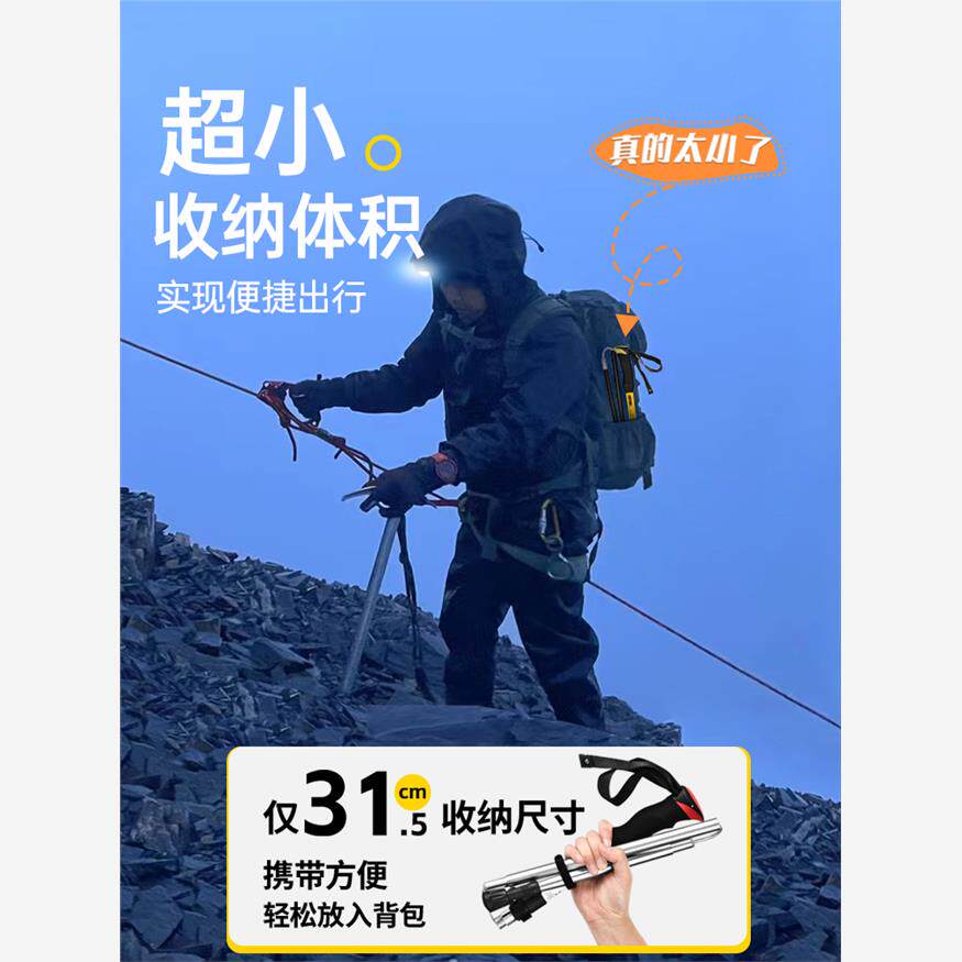原始人登山杖手杖轻便折叠碳纤维伸缩拐杖专业户外徒步装备爬山棍