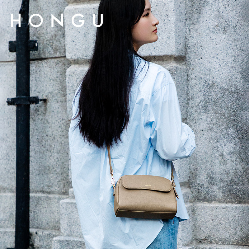 红谷女包2025新款时尚休闲单肩包斜挎包真皮小众枕头包相机包6047