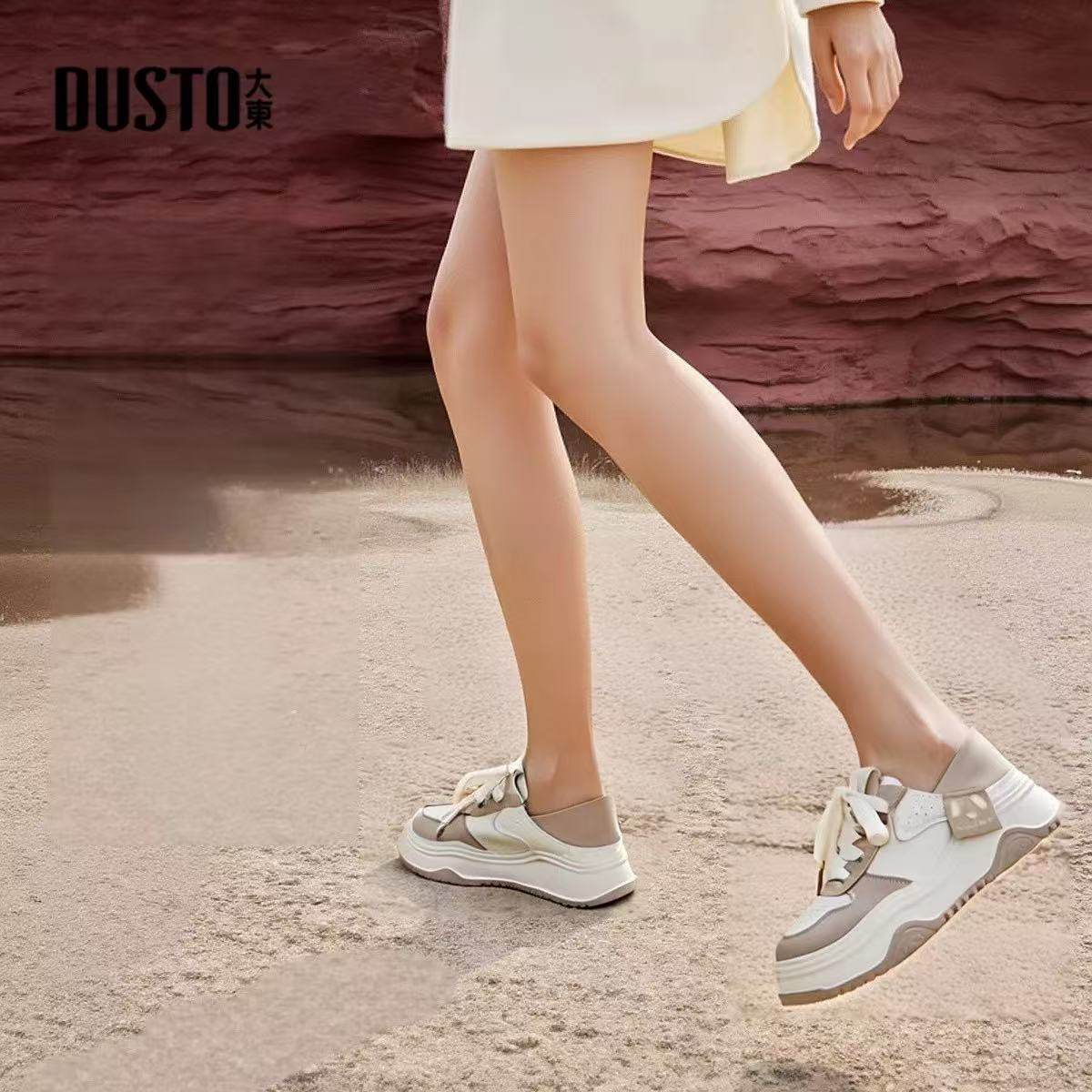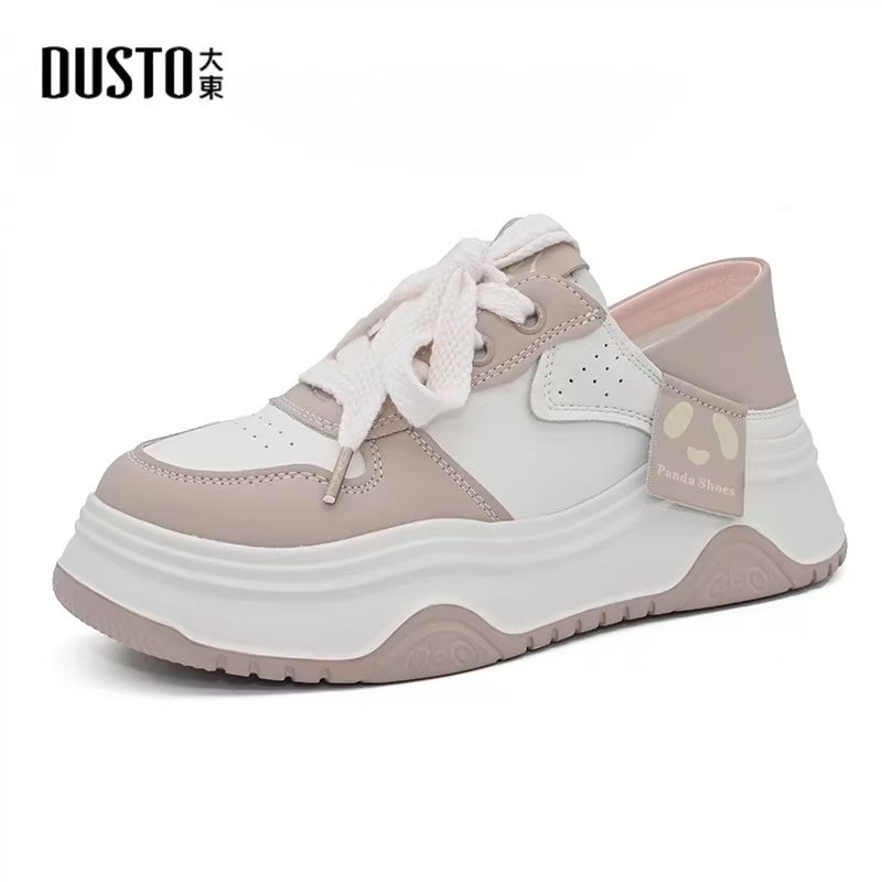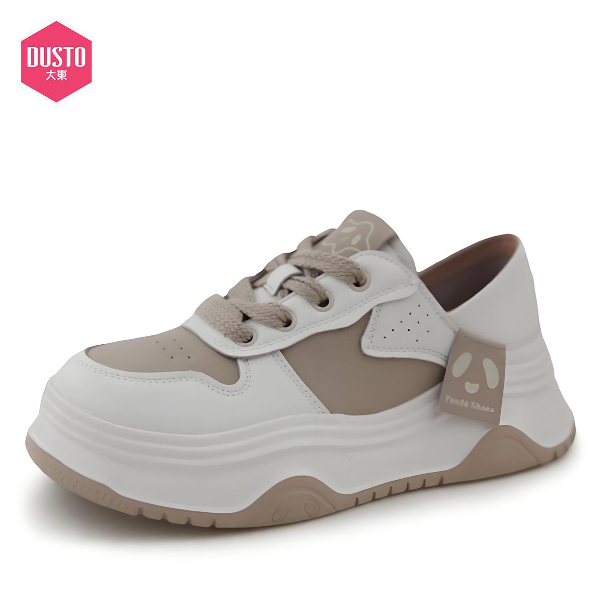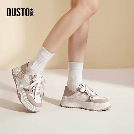 大东面包鞋女24秋季新款时尚休闲中跟厚底圆头系带小白鞋24Q1351