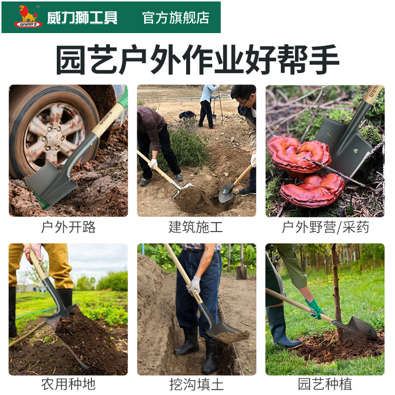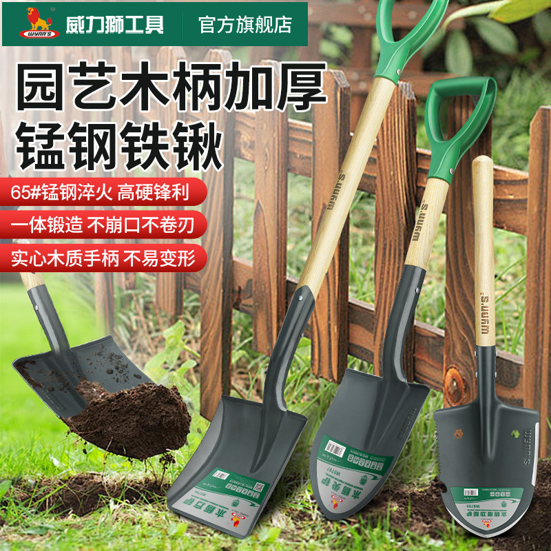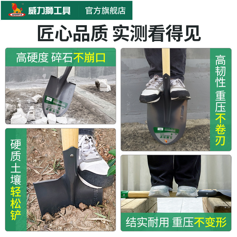 威力狮铁铲园林园艺工具锰钢尖方铲农用挖土种菜铁锹户外工兵铲子