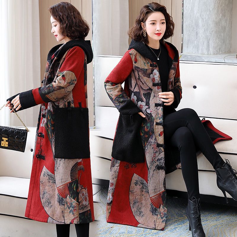 毛呢外套女中长款春季新款加厚中国民族风宽松斗篷妈妈呢子大衣潮