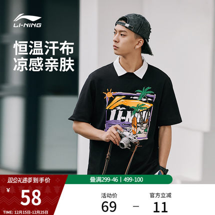 李宁短袖男士夏季官方男装半袖圆领体恤休闲宽松上衣印花运动T恤