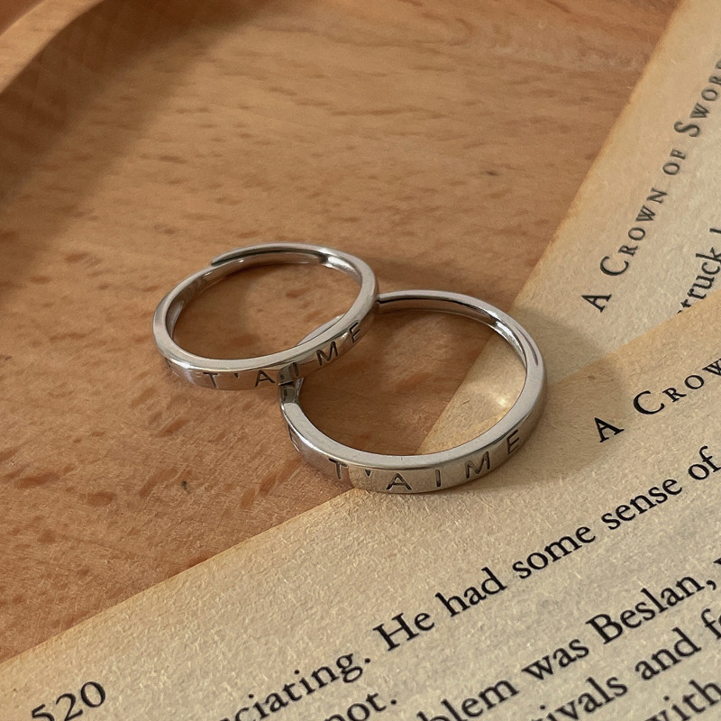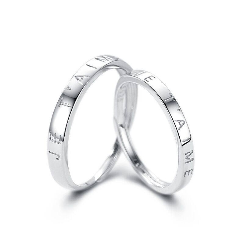 glad to meet u 法语jet’aime 纯银情侣戒指一对七夕送男友礼物