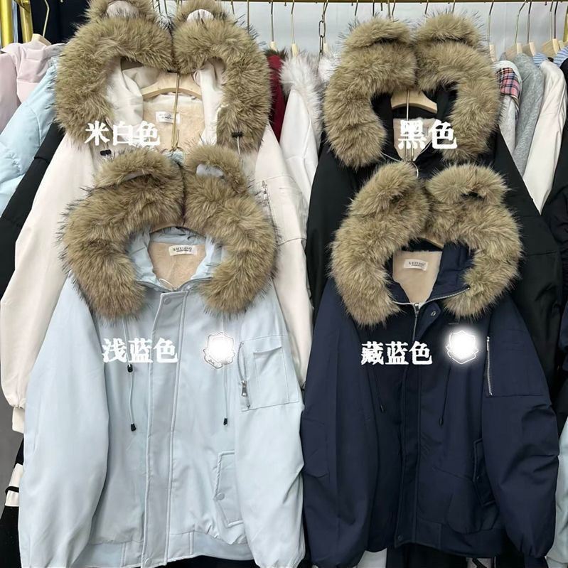 日系复古小熊耳朵外套加绒大毛领棉服女初中高中学生冬季加厚棉衣