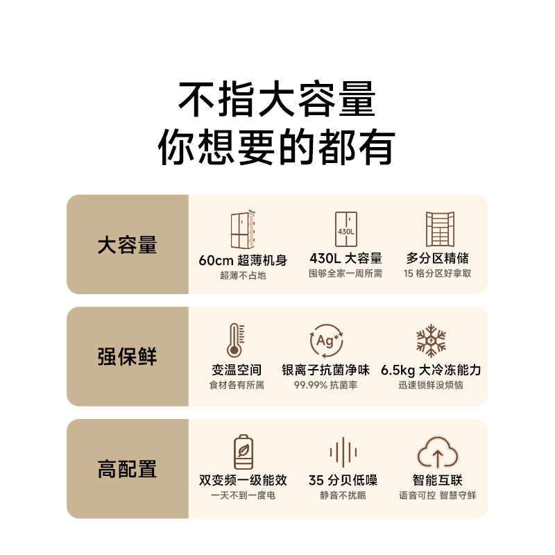 小米米家430L十字门家用冰箱一级