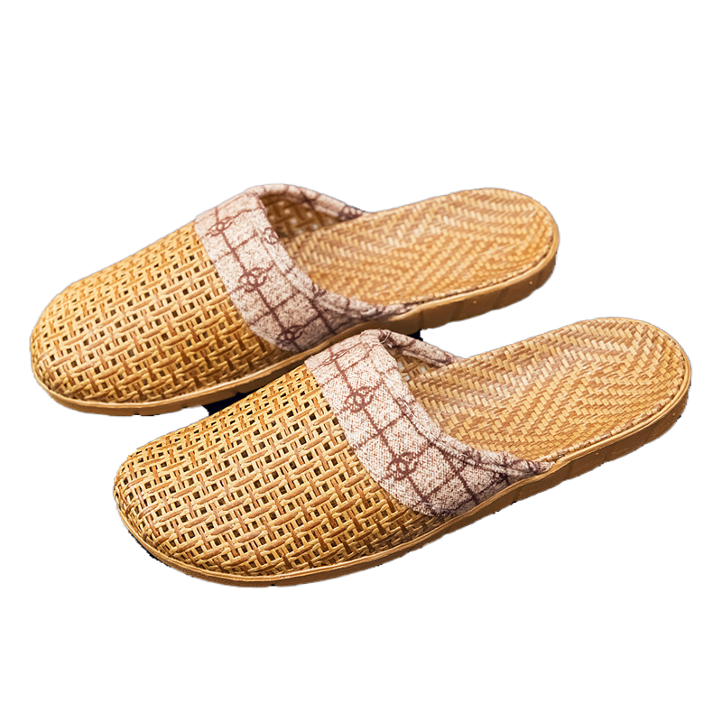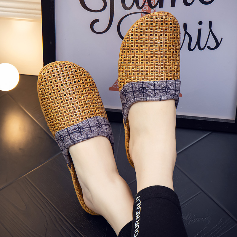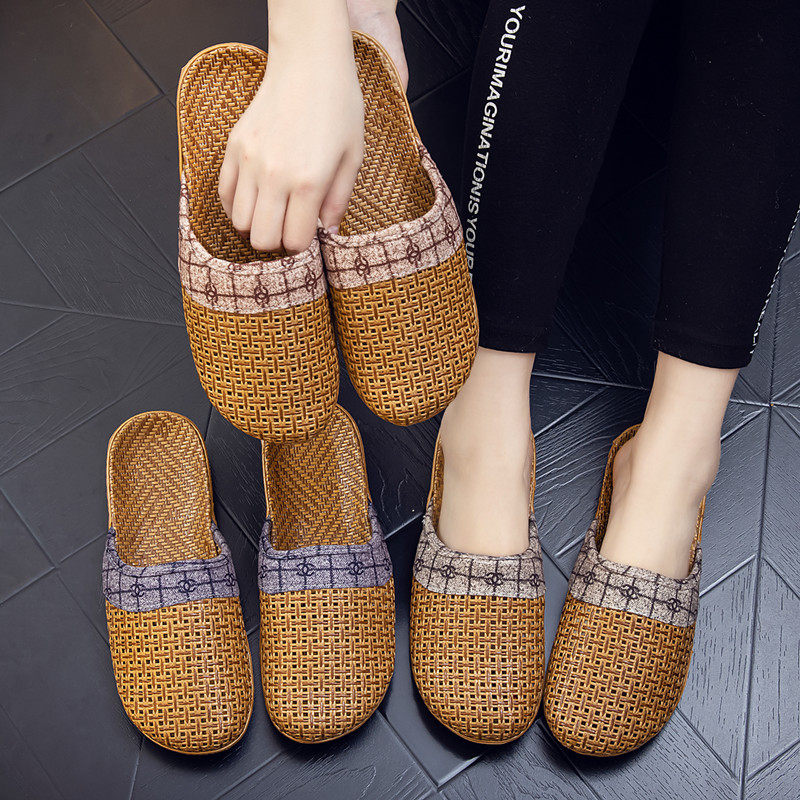 夏季藤草编织凉拖鞋轻便平底卧室居家情侣男女透气草席竹编凉托新