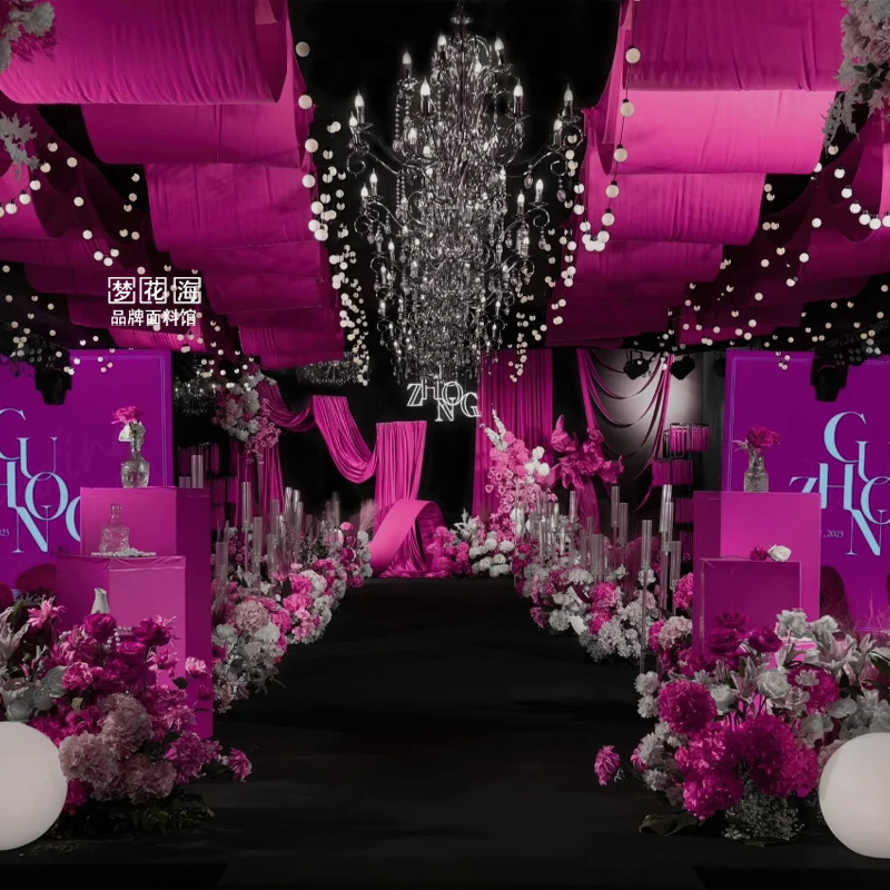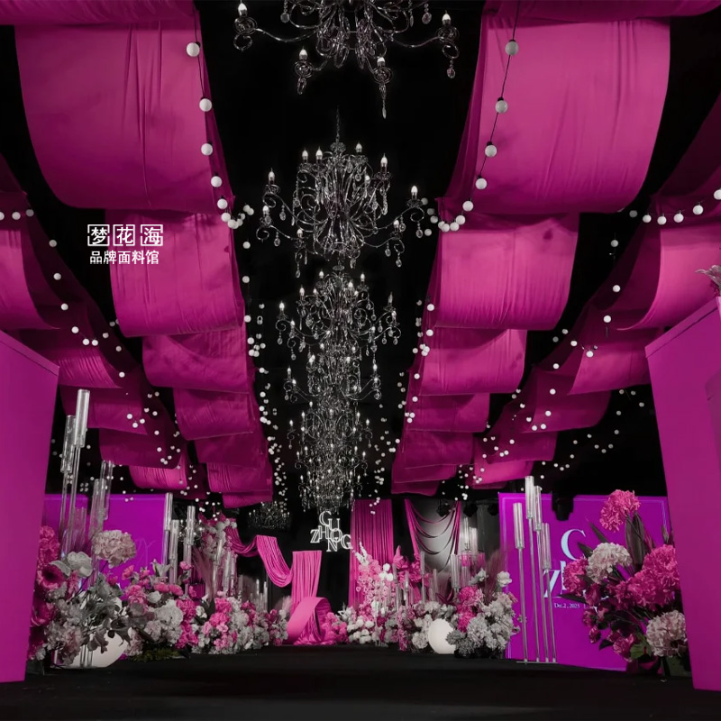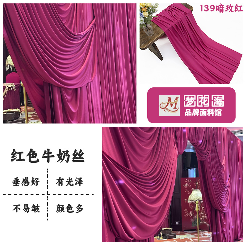 暗玫红婚庆牛奶丝弹力布料户外婚礼吊顶背景纱幔生日周岁装饰面料