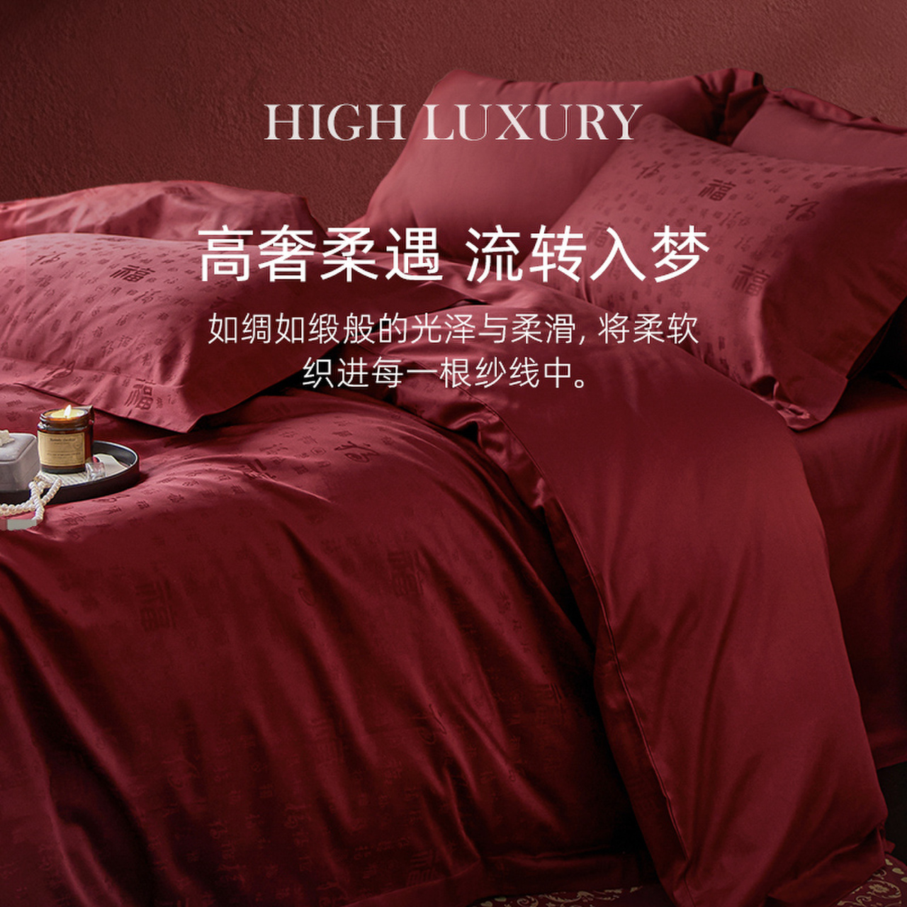 斯得福全棉大红色婚庆高端婚床四件套床单被套结婚高级感2025新款