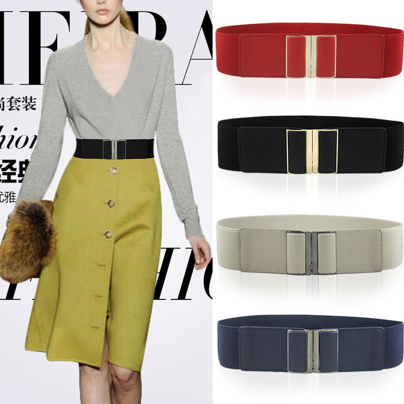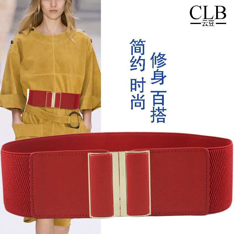 简约百搭松紧宽腰带女 时尚装饰配裙子 黑色弹力收腰大衣腰封外搭