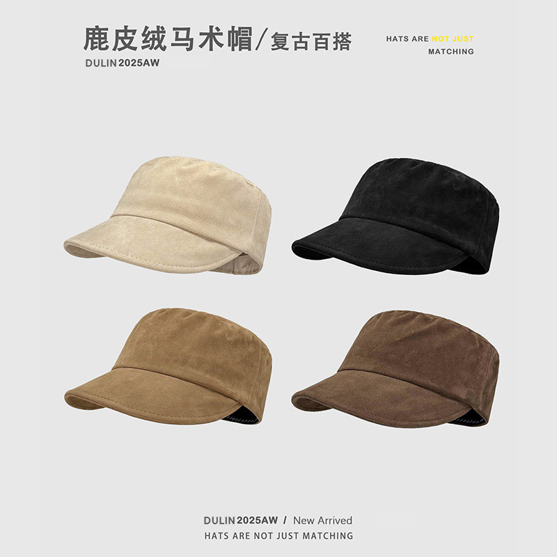 2025新款麂皮绒平顶马术帽女款秋冬季显脸小时尚骑士帽百搭贝雷帽