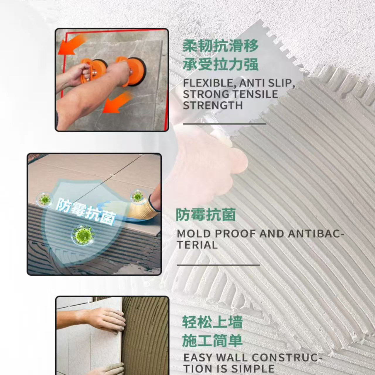 亚地斯X26高柔性瓷砖胶 抗滑移抗下垂 室内外通用玻化砖石材专用