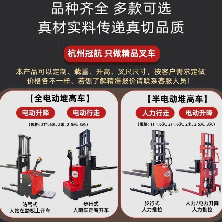 2吨半电动堆高车2T3米小型升高升降车电动堆高堆垛托盘地牛叉车