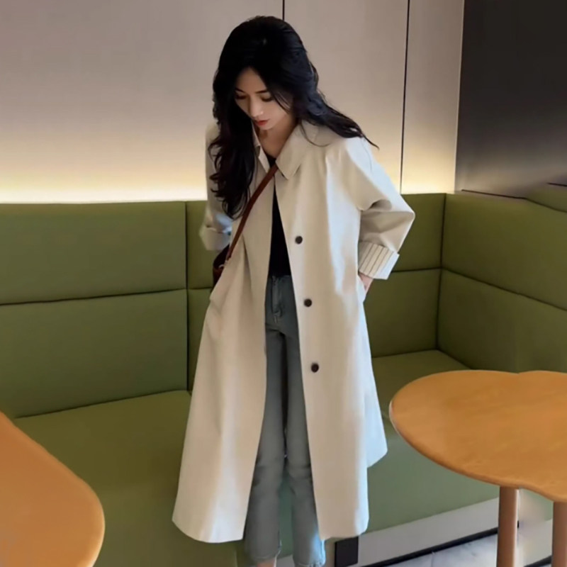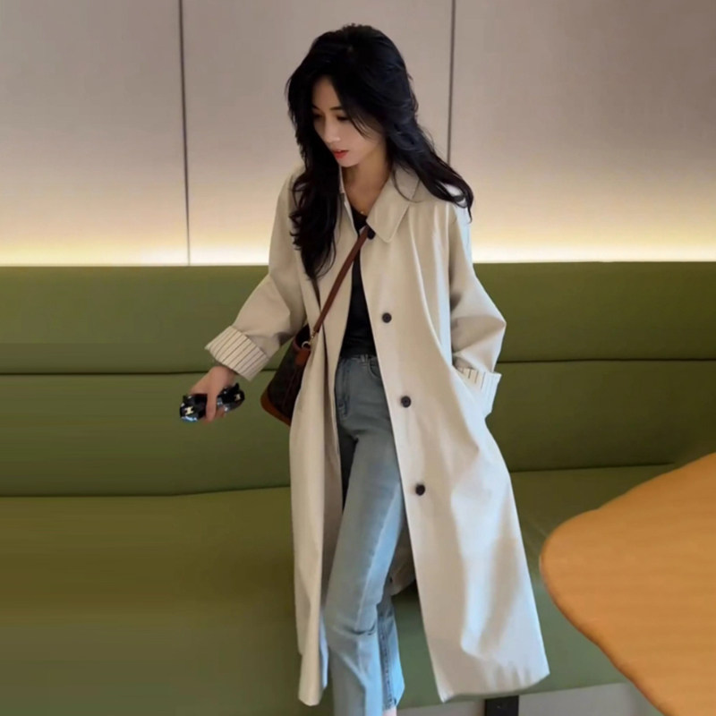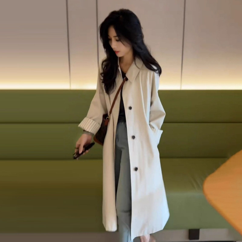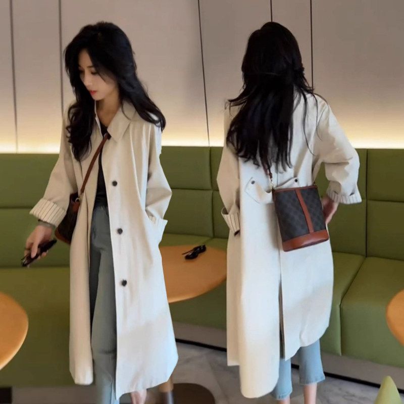 韩版时尚简约通勤中长款风衣女2025春秋新款休闲宽松气质长袖外套