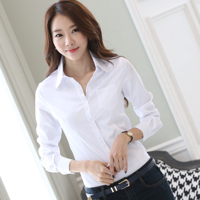白衬衫女长袖韩范百搭修身职业装工作服正装白色衬衣工装春装新款