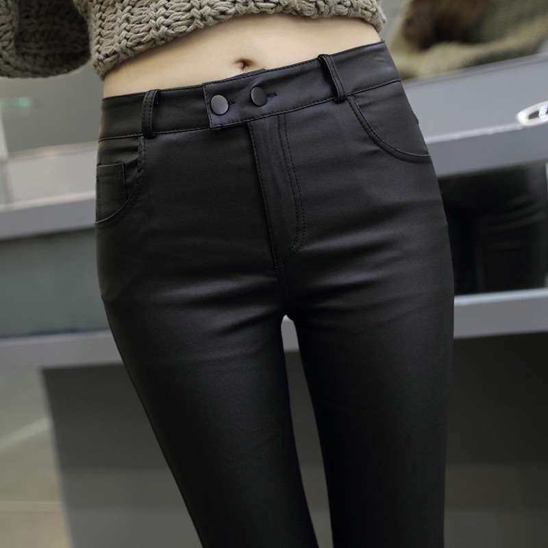 皮裤女高腰春秋款薄款加绒亚光黑色紧身打底裤女外穿哑光小脚裤子