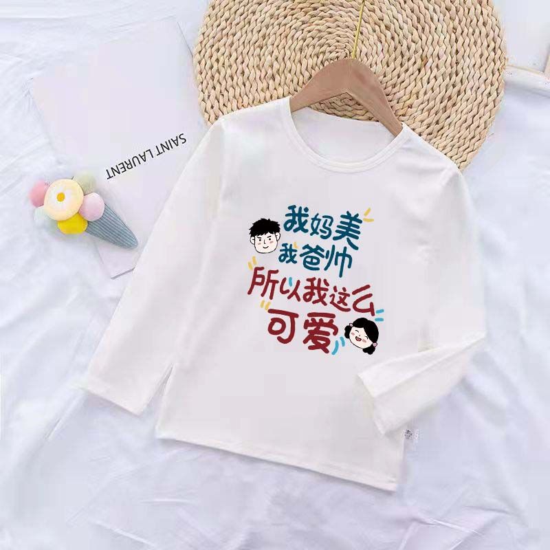 棉儿童白色长袖t恤2024春秋新款女童中小童上衣男童宝宝打底衫潮